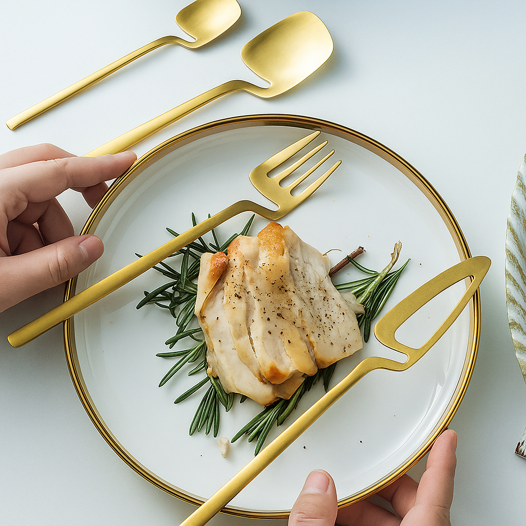 Bring elegance to every meal with the Milano Cutlery Set – a modern interpretation of a classic design, crafted from high-quality stainless steel . With its sleek matte finish or luxurious gold sheen, this cutlery is not only functional but also makes a stylish statement at the table.