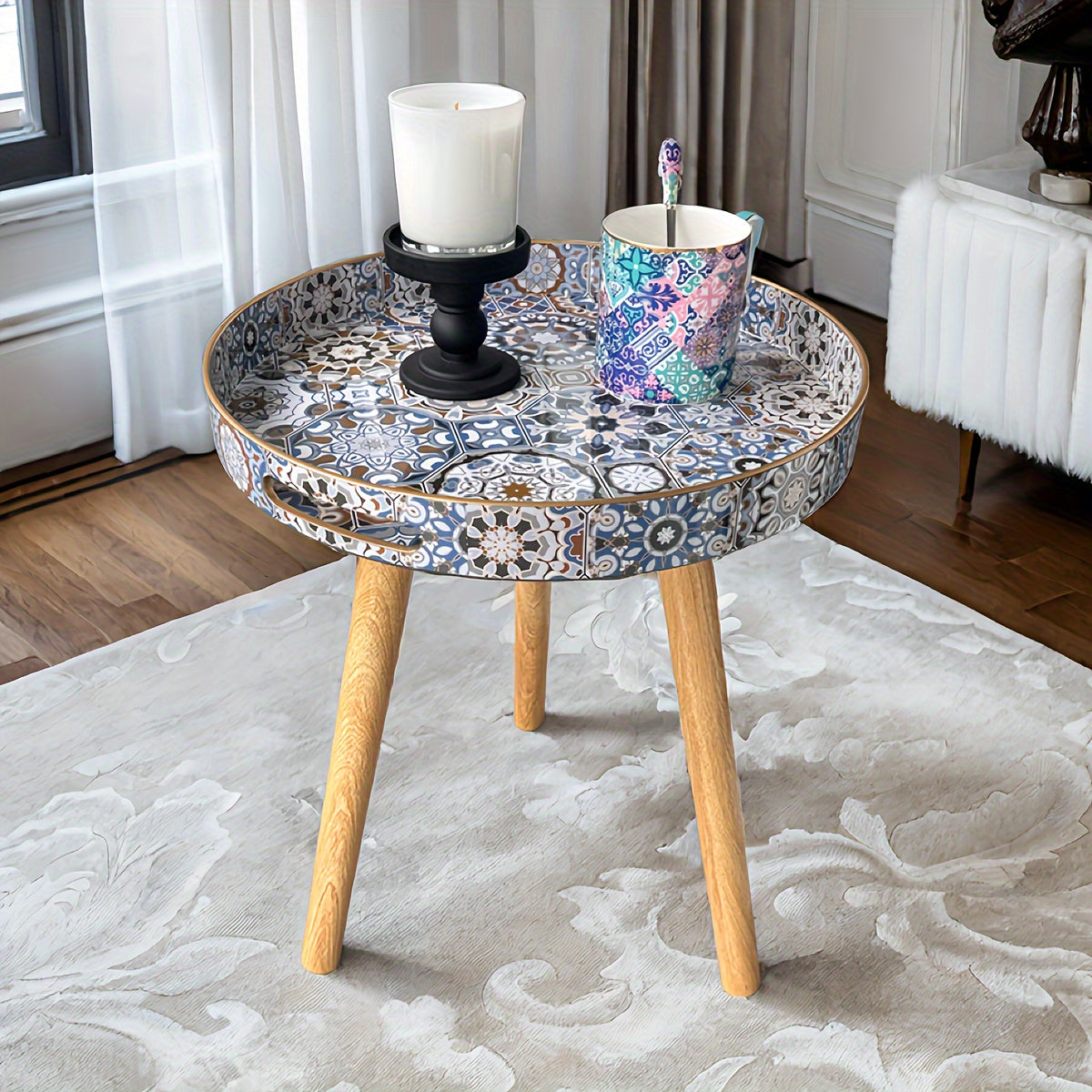 De afneembare poten maken de tafel eenvoudig te verplaatsen of op te bergen, terwijl het stevige houten frame zorgt voor stabiliteit en duurzaamheid. Gebruik hem in de woonkamer, slaapkamer of zelfs op het balkon voor een gezellige en stijlvolle uitstraling.
